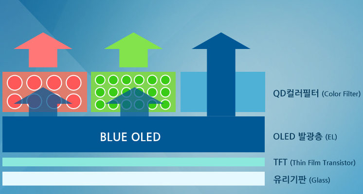 Samsung на рынок OLED-телевизоров. Выбран особый путь - совмещение фирменной технологии квантовых точек и органических светодиодов. В результате получаются дисплеи на базе синих OLED-элементов, на которые наложены фильтры из красных и зеленых квантовых пикселей.
