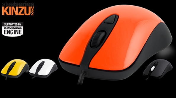 оборудована левой и правой кнопками, колесиком прокрутки, а также кнопкой изменения разрешения сенсора. Предустановленные показатели разрешения изначально оптимизированы для компьютерных игр, но их можно настраивать по своему усмотрению через программное обеспечение SteelSeries Engine. Данная технология позволяет также программировать кнопки, записывать макросы, отслеживать статистику нажатий на кнопки, создавать профили настроек для различных игр и т.д. Для «грызуна» предусмотрены четыре варианта расцветки – оранжевая, желтая, белая и черная. Эргономичная форма устройства делает его пригодным для использования как правой, так и левой рукой, а тефлоновые ножки, покрывающие более 16% основания, обеспечивают легкое скольжение при любой скорости перемещения. Цена SteelSeries Kinzu V2 составляет 1900 рублей.
