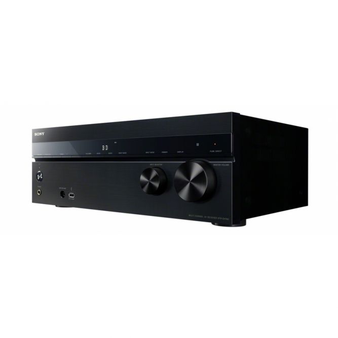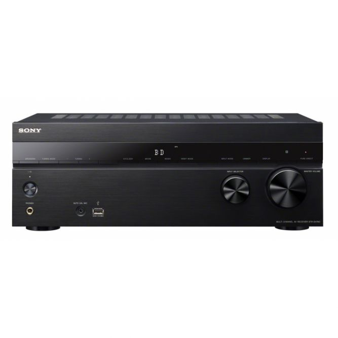 Дизайн новинки строгий, все сделано исключительно аккуратно, что в правилах Sony. Ресивер создавался не для привлечения внимания домочадцев, а скорее для того, чтобы совершенно незаметно и органично вписаться в любой существующий комплект техники домашнего кинотеатра и обстановку жилища. На лицевой панели имеются два привычных регулятора (ручка громкости и барабан для выбора пунктов меню), однострочный дисплей, базовый набор клавиш, а также порты для наушников, портативной техники и калибровочного микрофона. Компания предусмотрела только один цветовой вариант, зато универсальный: черный.